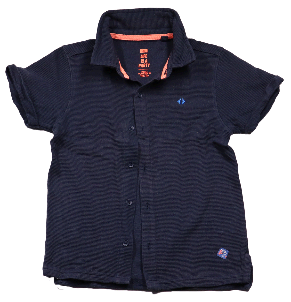 WE polo Ara in maat 122. Een stoer polo shirt in een mooie donkerblauwe kleur met oranje details wat stijlvol staat in iedere gelegenheid.