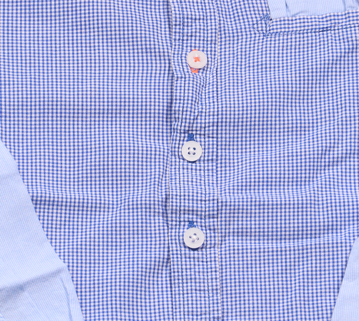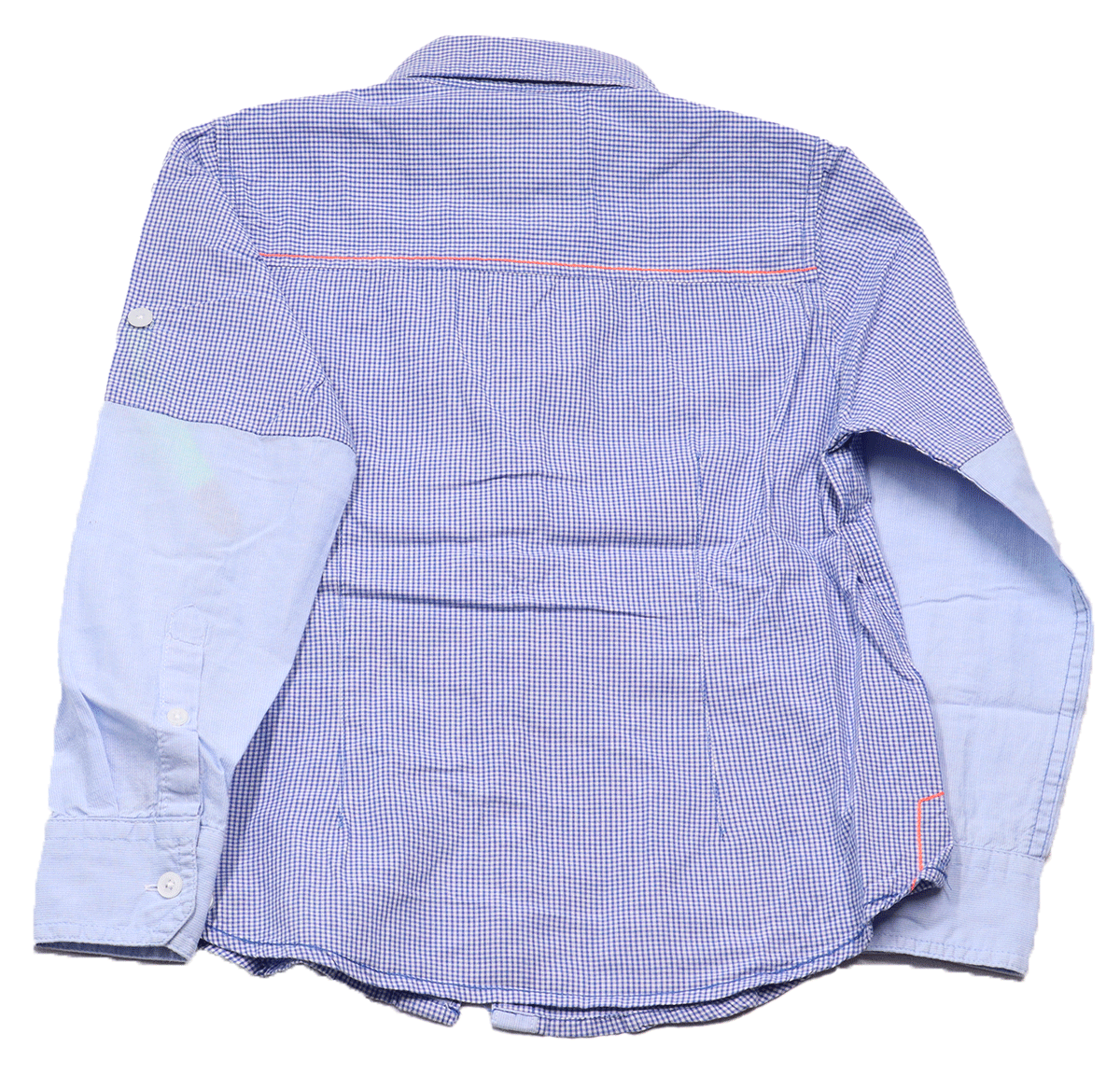 Het overhemd is gemaakt van 100% katoen, wat zorgt voor een ademende en zachte stof. Dit maakt het comfortabel om te dragen, zelfs tijdens langere periodes. Het overhemd is gedragen, maar vertoont slechts enkele onopvallende gebruikerssporen. Er zitten geen vlekken of gaten in de stof, en de stof is niet pillig, wat betekent dat het overhemd er nog steeds fris uitziet. Bovendien zijn alle knopen intact, zodat het kledingstuk volledig functioneel is.