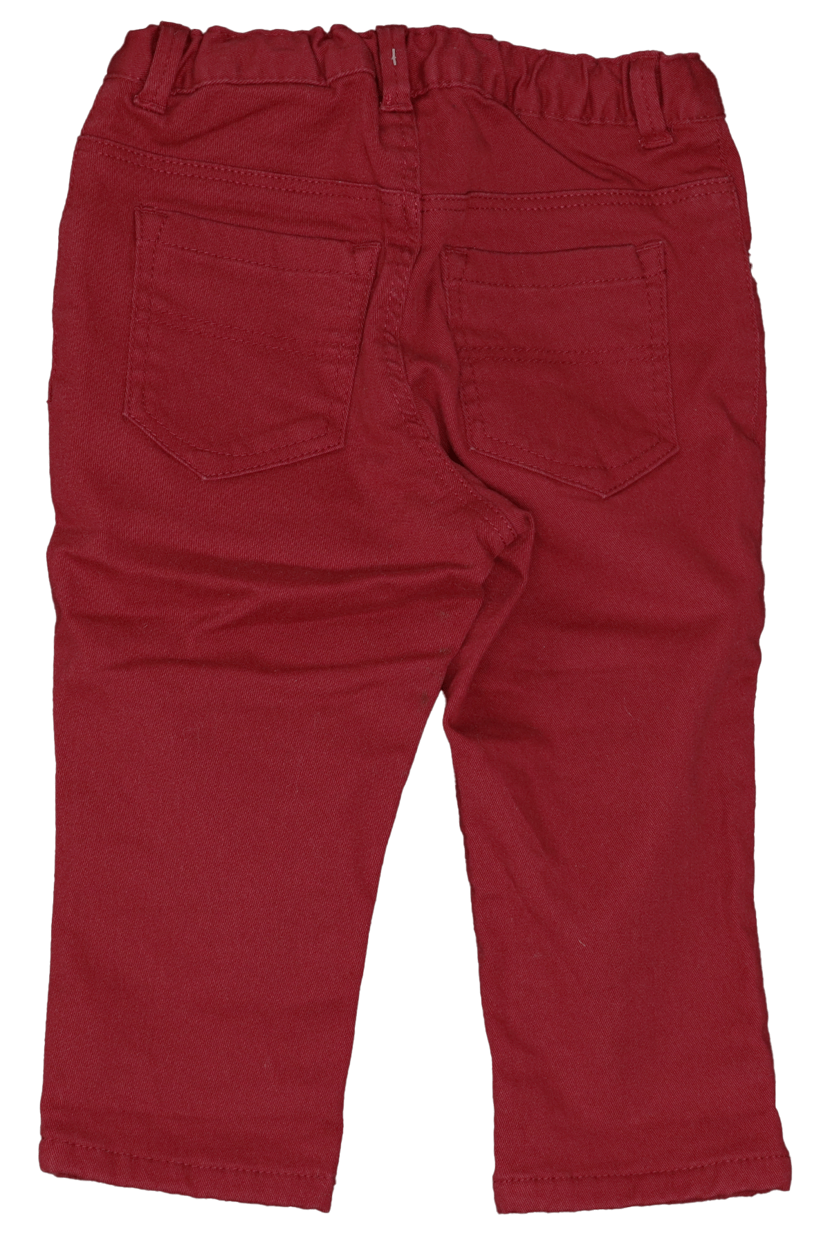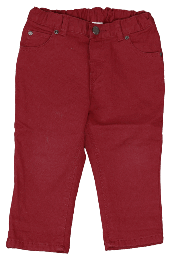 Stoere denim van H&M voor jongens (maat 80) met wijde fit, drukknoopsluiting, verstelbare elastische band en donkerrode kleur. Gemaakt van katoen met elastaan.