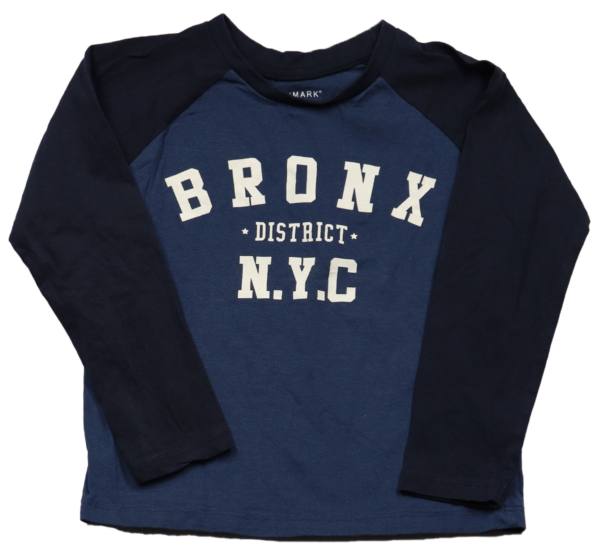 Op de voorzijde van de longsleeve staat een witte tekstopdruk met de tekst: ‘Bronx district N.Y.C.’ Deze opdruk geeft de longsleeve een stoere en trendy look, perfect voor jongens die van een beetje flair houden.