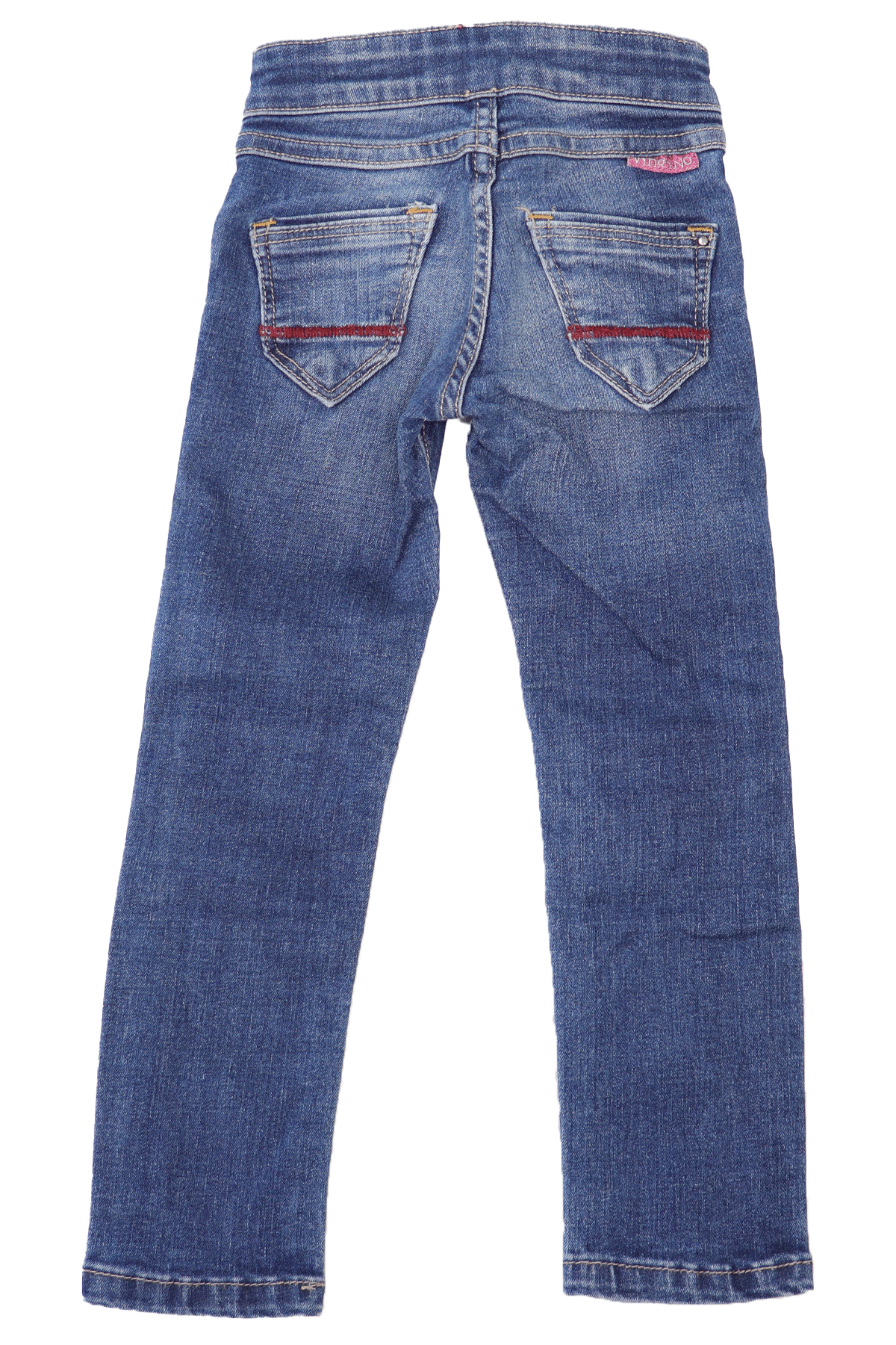 Deze Vingino Blue jeans jegging in maat 98 heeft een aansluitende fit en fake voorzakken met studs. De verstelbare tailleband zorgt voor comfort. De stoere blauwe kleur is voorzien van een lichte, vale wassing over de bovenbenen en knieën. Gemaakt van katoen, polyester en elastaan. Licht gedragen zonder gaten of vlekken. Perfect voor actieve en stijlvolle meisjes!