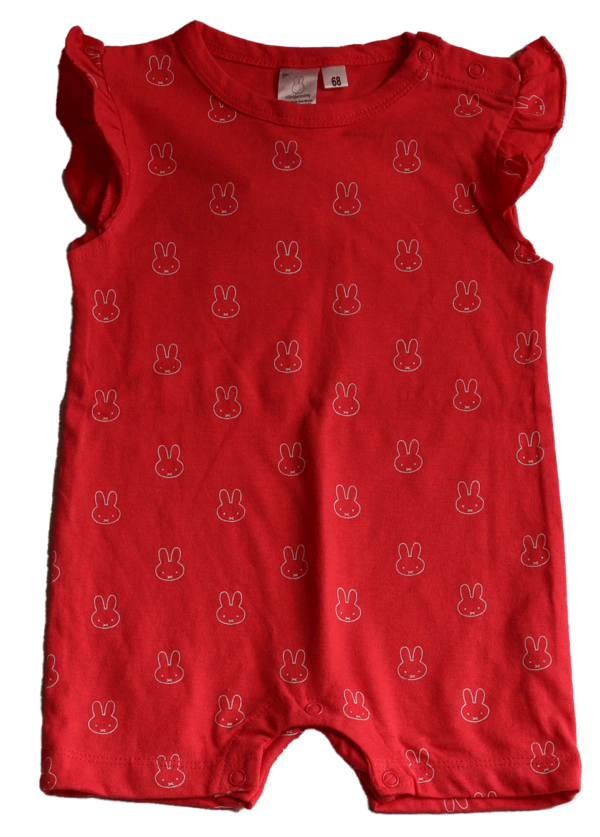 Ontdek de vreugde van comfort en stijl met onze rode playsuit met een all-over Nijntje-motief. Deze speelse outfit, gemaakt van een mix van katoen en elastaan, is ontworpen met het oog op zowel comfort als stijl, waardoor het een ideale keuze is voor de garderobe van elk kind.