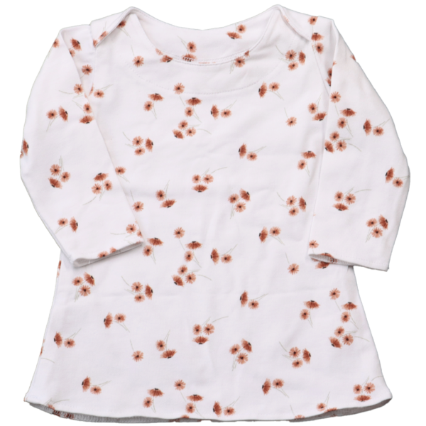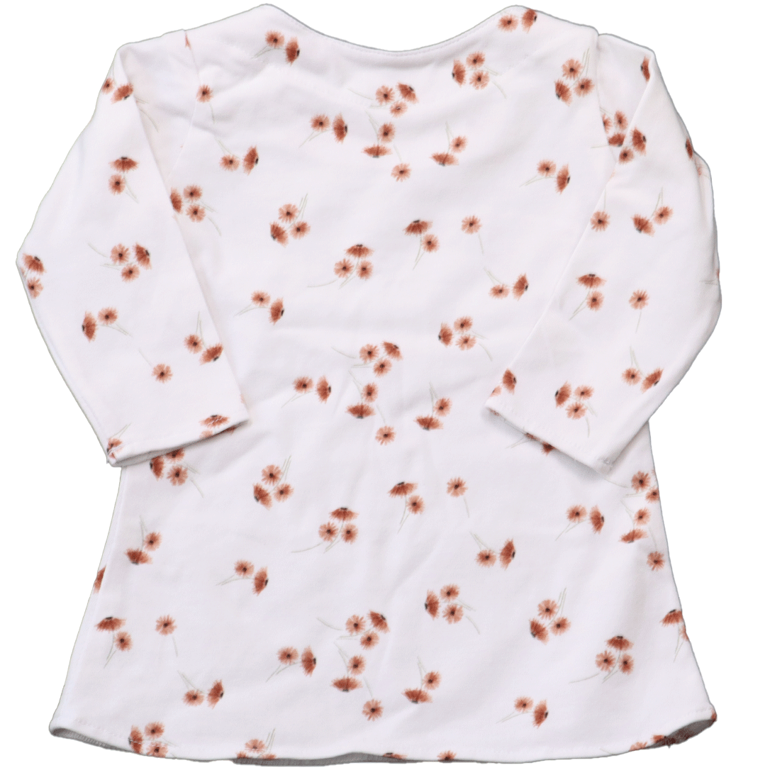 Dit jurkje is gemaakt van hoogwaardig katoen, wat zorgt voor een zachte en ademende stof die prettig aanvoelt op de gevoelige huid van je baby. Hoewel het jurkje gedragen is, vertoont het slechts een onopvallend gebruikersspoortje. Er zijn geen vlekken, gaten of oneffenheden in de stof, waardoor het jurkje nog steeds in uitstekende staat verkeert.