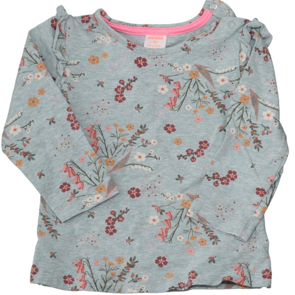Hema blauwe bloemetje longsleeve. Een longsleeve van Hema in maat 80 is een perfecte keuze voor je kleintje. Deze longsleeve heeft een regular fit pasvorm, wat betekent dat het comfortabel zit zonder te strak te zijn. Het model is recht en heeft een ronde hals, wat zorgt voor een klassieke en tijdloze uitstraling.