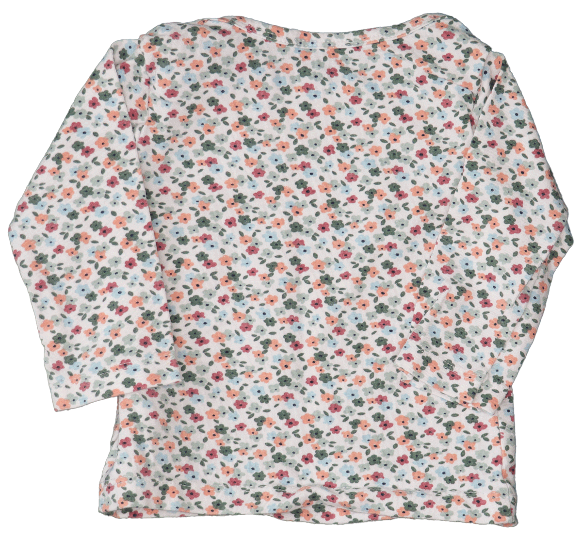 Prenatal longsleeve maat 62 voor meisjes. Wit met bloemenprint, envelophals en regular fit. Biokatoen, netjes gedragen, zonder vlekken.