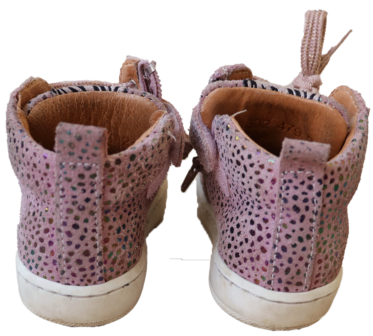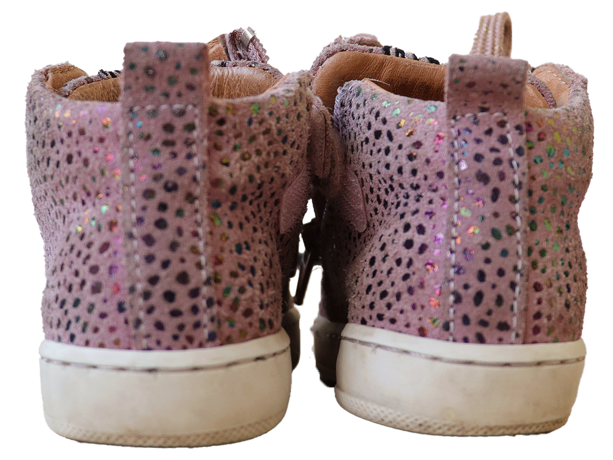 Deze oudroze Develab sneakers in maat 21 hebben een halfhoog model, metallic dierenprint en leren binnenwerk. Licht gedragen, nog in goede staat.