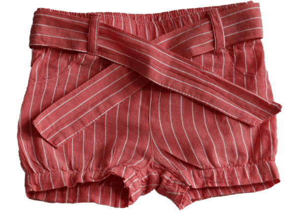 De tailleband is elastisch en voorzien van een opvallend ceintuur. Hiermee kun je een sierlijke strik maken, wat een extra stijlvol detail toevoegt. De short heeft een oud roze kleur en is versierd met een wit verticaal streepje. Dit zorgt voor een tijdloze en elegante look.