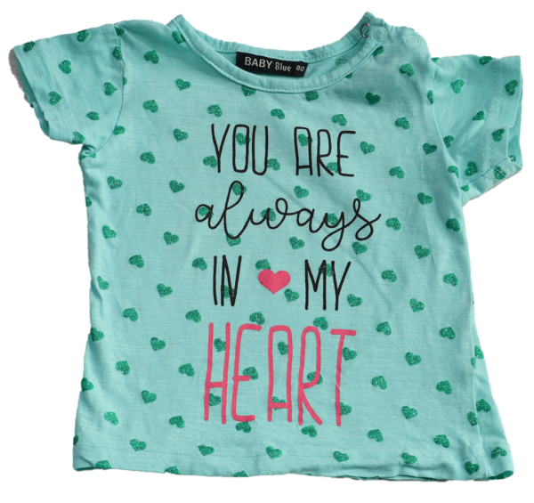 Maar wat dit T-shirt echt onderscheidt, is de prachtige tekst op de voorzijde: ‘you are always in my heart’. Deze liefdevolle boodschap maakt het T-shirt niet alleen schattig, maar ook betekenisvol. Het is een prachtige manier om de onvoorwaardelijke liefde van ouders voor hun kind uit te drukken.
