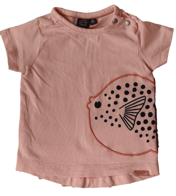 Het shirt heeft een frisse roze kleur wat ‘blush pink’ wordt genoemd.