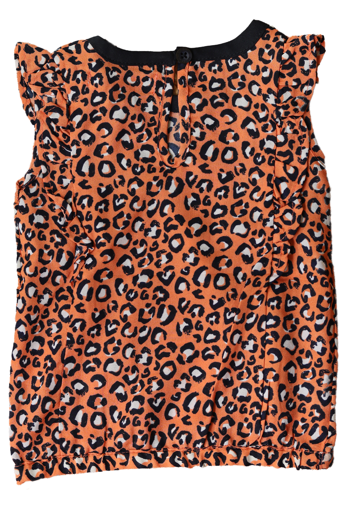 Het shirt is uitgevoerd in een levendige oranje kleur, gecombineerd met wit, wat het een frisse en vrolijke uitstraling geeft. Het luipaardenmotief voegt een speels en trendy element toe, waardoor het shirt een echte blikvanger is. Dit motief is niet alleen modieus, maar ook leuk en aantrekkelijk voor kinderen.