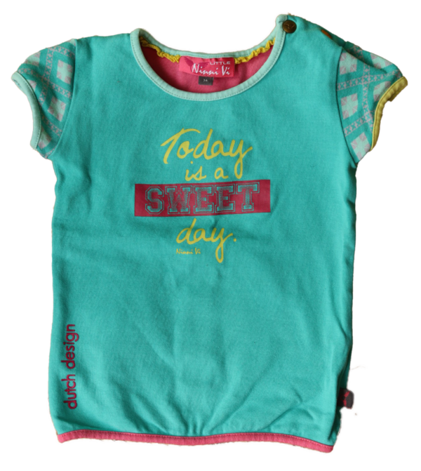 De opdruk is geel met rood en heeft de tekst ‘Today is a sweet day’