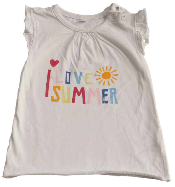 Dit prachtige Mouwloos shirt Summer is een perfecte aanvulling op elke zomergarderobe. Het shirt is uitgevoerd in een stralend witte kleur, die de zomerse sfeer perfect weerspiegelt. Op de voorkant van het shirt staat in vrolijke, gekleurde letters de tekst ‘I love summer’, een uitdrukking van de vreugde en het plezier dat de zomer met zich meebrengt.