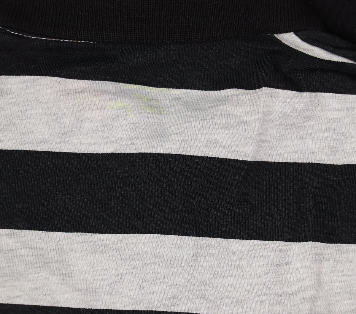De hals is voorzien van een soepele kraag. Deze is gemaakt van een fijne ribstof die zacht aanvoelt. Aan de voorzijde zitten drie kleine bruine knoopjes. Hiermee kan de hals gedeeltelijk open of dicht gedragen worden. Dit maakt het shirt makkelijk aan en uit te trekken.