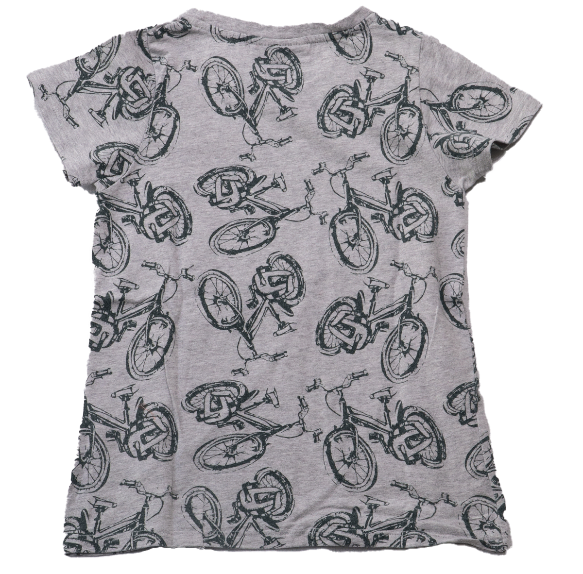 Het shirt is lichtgrijs van kleur, wat het een veelzijdige toevoeging maakt aan elke garderobe. De all-over print van fietsen geeft het shirt een speelse en unieke uitstraling. Dit maakt het perfect voor actieve jongens die van avontuur houden.