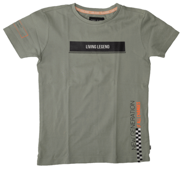 De opdrukken maken dit shirt extra bijzonder. Op de borst staat de stoere tekst “Living Legend”. Onderaan links is een sierlijke verticale tekst te zien, afgewerkt met oranje details. Deze combinatie van prints geeft het shirt een coole uitstraling die perfect past bij jongens die van een stoere stijl houden.