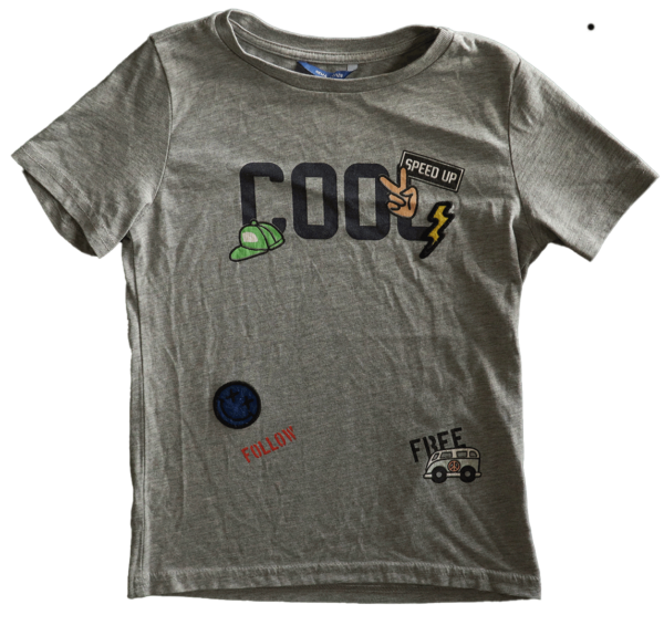 Wat dit T-shirt echt onderscheidt, is de opdruk ‘Cool’ en de verschillende applicaties. Deze speelse en trendy elementen voegen een vrolijk en zomers element toe aan het T-shirt. De tekst ‘Cool’ is een krachtig symbool van zelfvertrouwen en stijl, en de verschillende applicaties voegen een uniek en creatief element toe dat zeker een glimlach op het gezicht van elke jongen zal toveren.