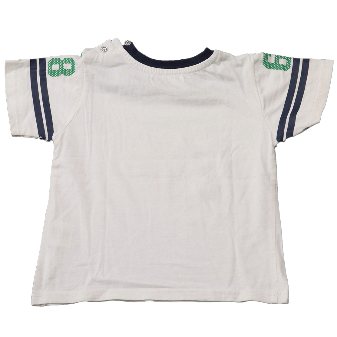 Hoewel het shirt gedragen is, zijn er slechts enkele kleine, onopvallende gebruikerssporen. Er zijn geen vlekken of gaten, wat aangeeft dat het shirt nog in goede staat verkeert. Dit maakt het een duurzame keuze voor ouders die op zoek zijn naar kwalitatieve kleding voor hun kinderen.