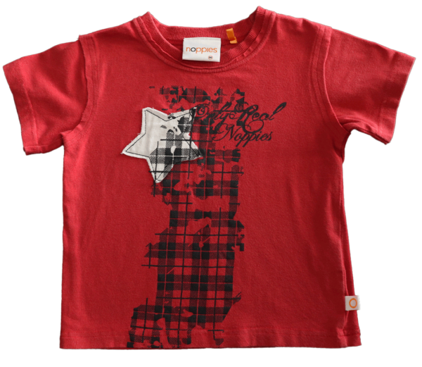 Het Noppies T-shirt in maat 92 is een prachtig kledingstuk dat zowel stijl als comfort belichaamt. Dit shirt, met zijn levendige rode kleur, is een opvallend stuk dat zeker de aandacht zal trekken. De voorzijde is versierd met een zwarte opdruk die een sterk contrast vormt met de rode achtergrond, waardoor het ontwerp echt opvalt.