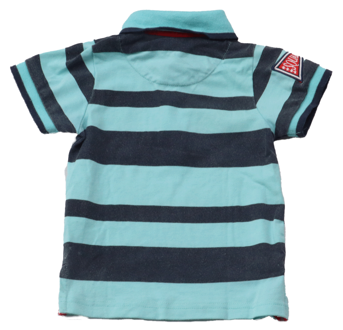 De blauwe kleur met donkerblauwe banen en rode details geeft het shirt een trendy en tevens speelse uitstraling. Het kan gemakkelijk gecombineerd worden met verschillende soorten broeken en shorts, waardoor het een veelzijdige toevoeging is aan de garderobe van elk kind. Ondanks de gebruikerssporen blijft het shirt een stijlvolle keuze voor zowel casual als semi-formele gelegenheden.