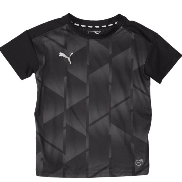 Sportief zwart Puma shirt voor jongens in maat 128. Gemaakt van ademend Dry Cell polyester met mesh rug. Licht gedragen, geen vlekken of gaten.