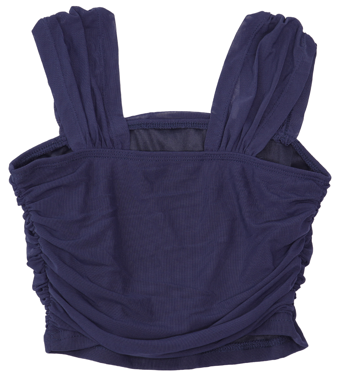 Stijlvolle donkerblauwe crop top van Shein in maat XS-34. Mouwloos, met geplooide schouderbanden en gemaakt van luchtige chiffon stof.