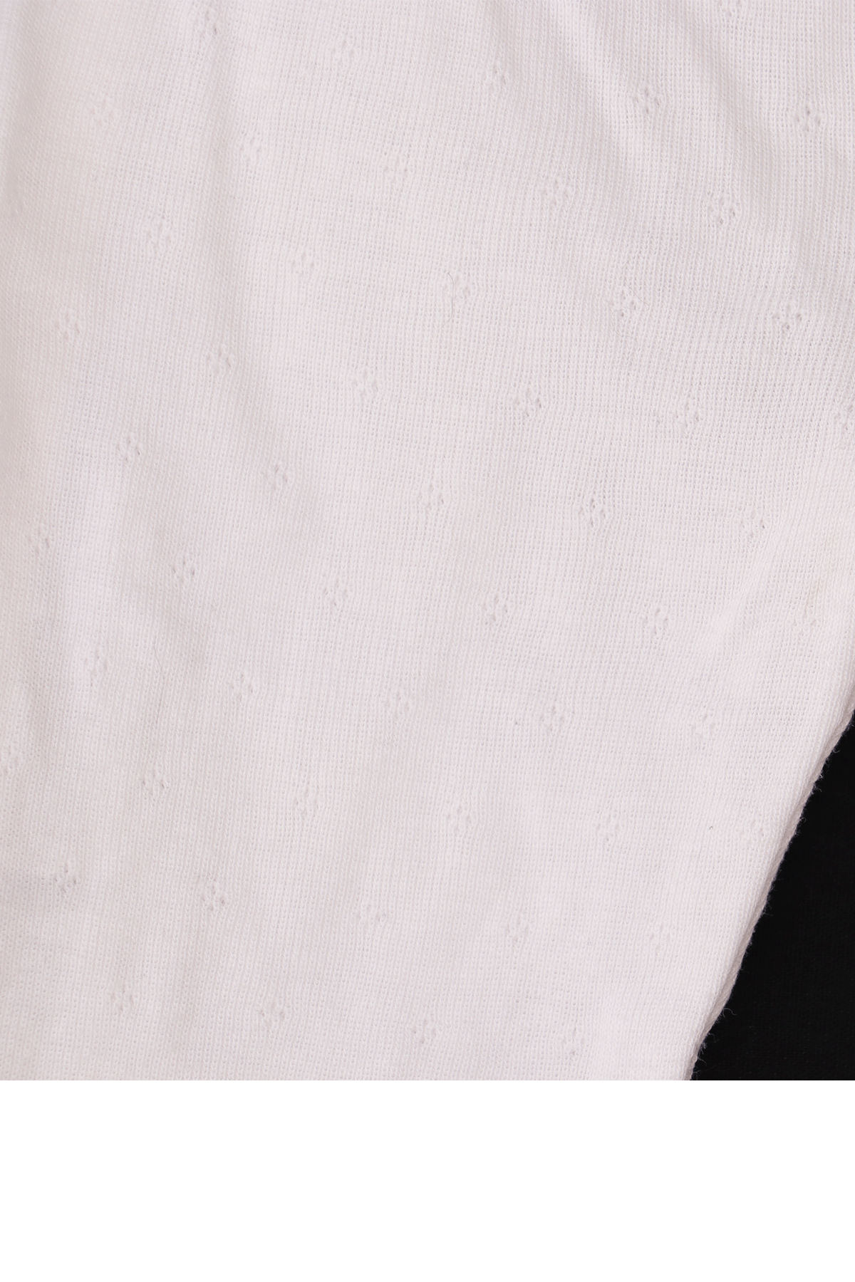 De kleur van het broekje is fris wit. Over het hele broekje is een subtiel motiefje verwerkt in de stof. Dit all-over dessin geeft een luxe en verfijnde uitstraling zonder te druk te zijn.