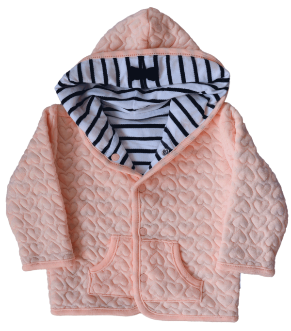 Gemaakt van katoen, staat dit jasje garant voor comfort en duurzaamheid. Katoen is een natuurlijk materiaal dat bekend staat om zijn ademend vermogen en zachtheid, waardoor het ideaal is voor de gevoelige huid van baby’s. Bovendien is het gemakkelijk te wassen en te onderhouden, wat het een praktische keuze maakt voor dagelijks gebruik.