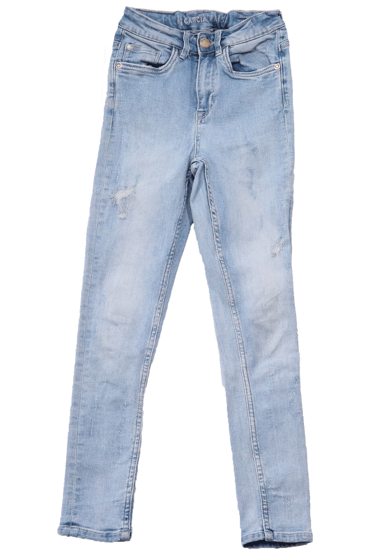 De jeans is gemaakt van een mix van katoen, elastaan en polyester. Deze combinatie zorgt voor duurzaamheid en een beetje stretch voor bovendien extra bewegingsvrijheid. Hoewel de jeans gedragen is en enkele gebruikerssporen vertoont, zijn er geen gaten of opvallende vlekken aanwezig. De stof is ook niet pillig, wat betekent dat de jeans er nog steeds netjes uitziet.