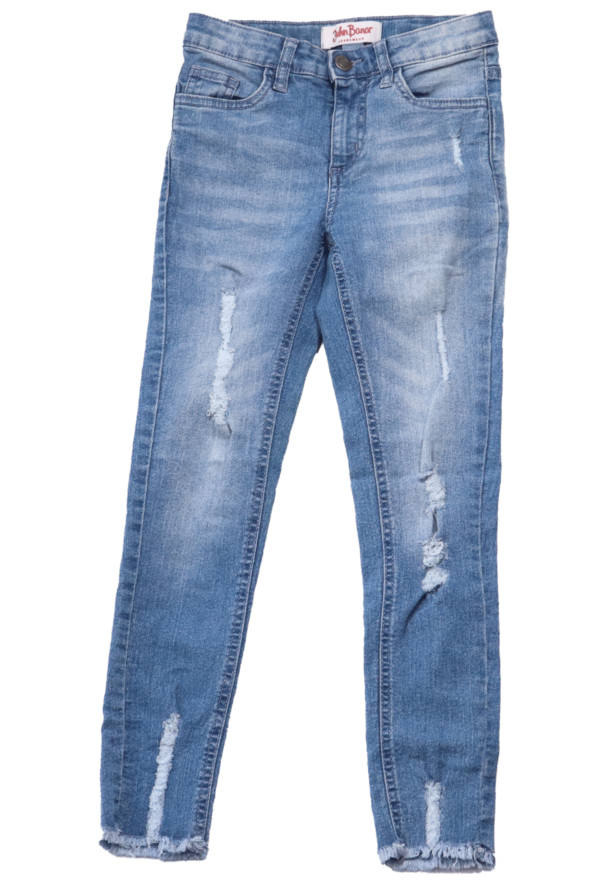 Deze John Baner spijkerbroek gerafeld combineert stijl en functionaliteit. De skinny pasvorm en de lengte tot boven de enkel zorgen voor een moderne look. De verstelbare elastische tailleband en de duurzame materialen zorgen voor comfort en een goede pasvorm. De vale blauwe kleur en de praktische steekzakken maken deze jeans een veelzijdige toevoeging aan elke garderobe.