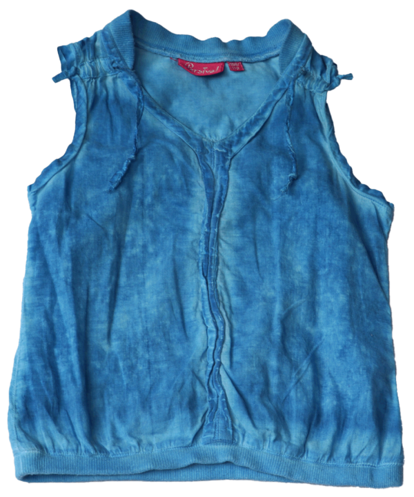 Ervaar het comfort van katoen en de flexibiliteit van lycra, en laat je betoveren door de heldere blauwe kleur en de unieke details. Kies voor de Persival mouwloze blouse en voeg een vleugje elegantie en stijl toe aan je garderobe.